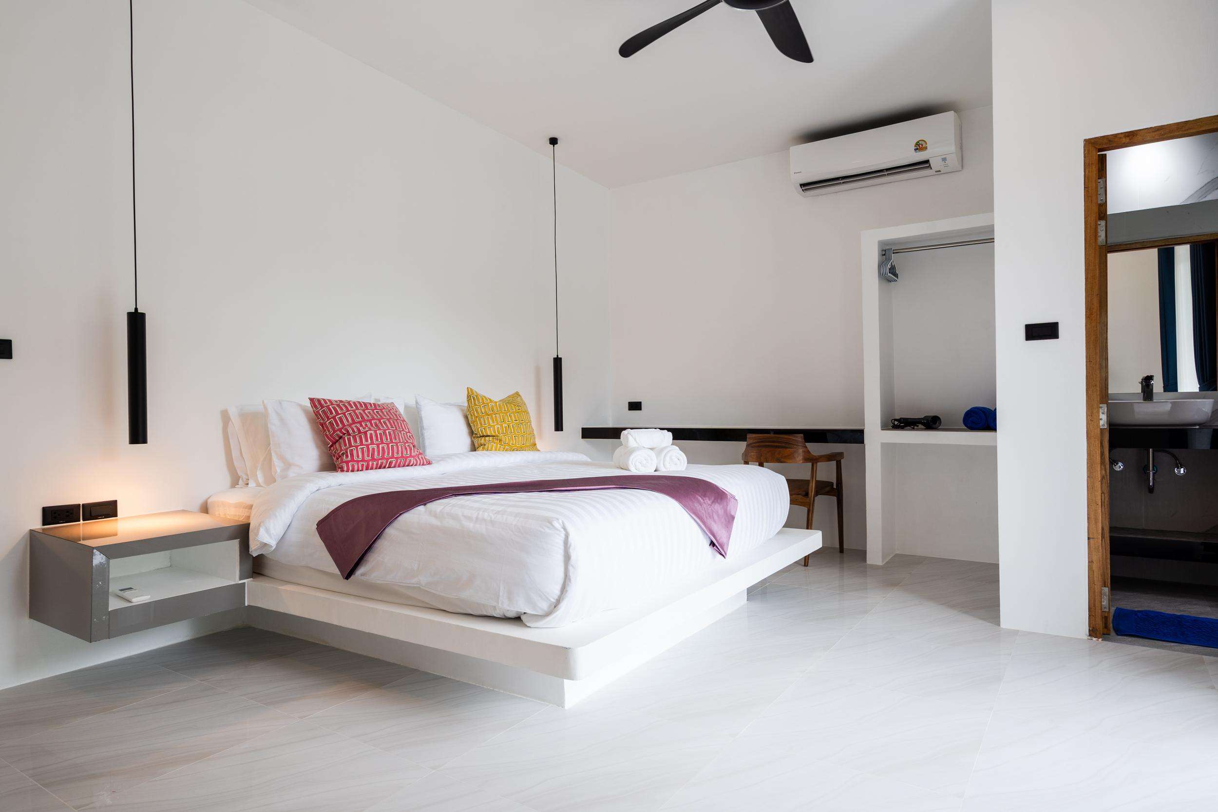 This luxury villa has high ceilings and is fitted with stylish, modern furnishings, tiles and curtains. Located only 400 metres from Long Beach, this 3 bedroom pool villa is modern, cool and hosted by the owner