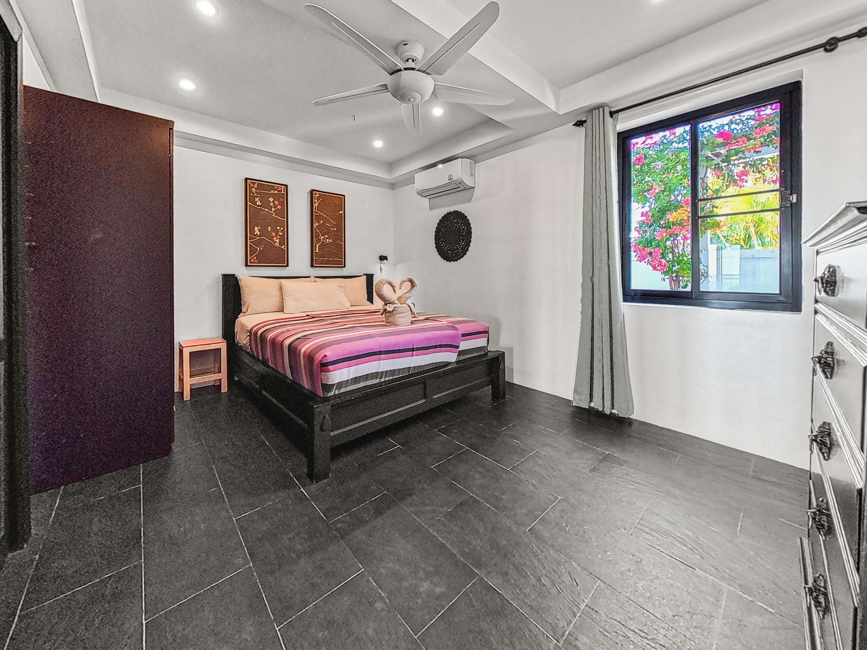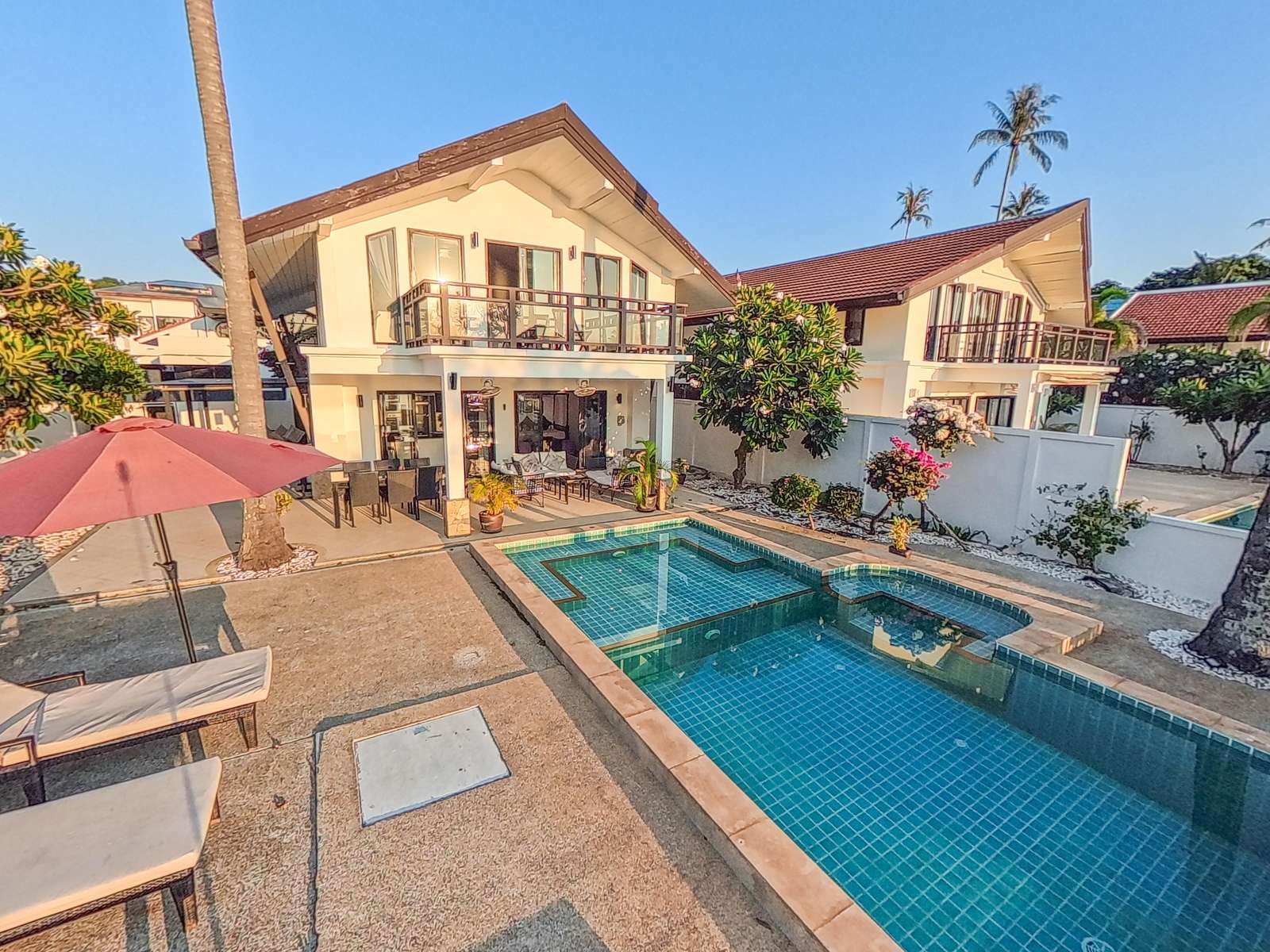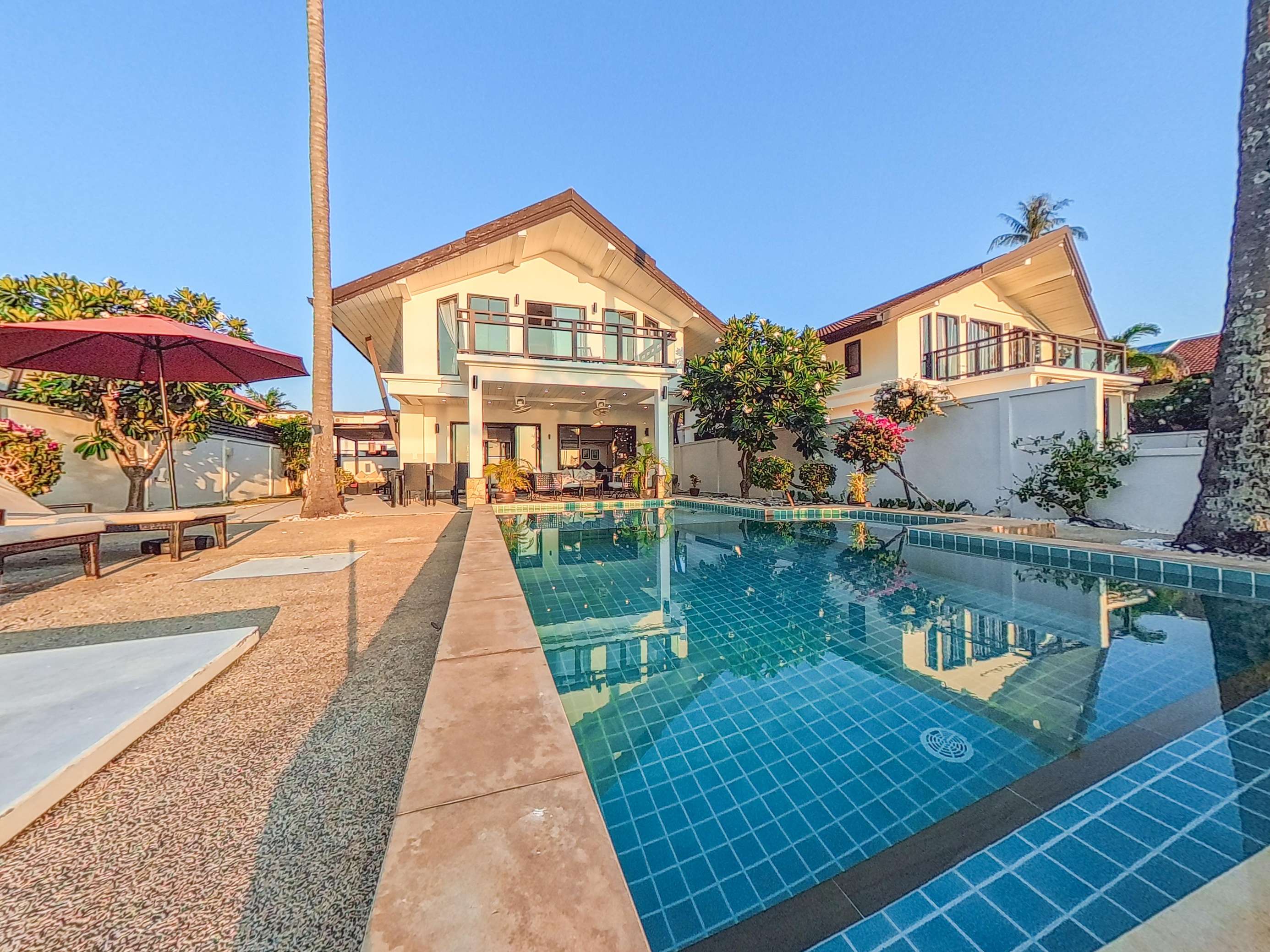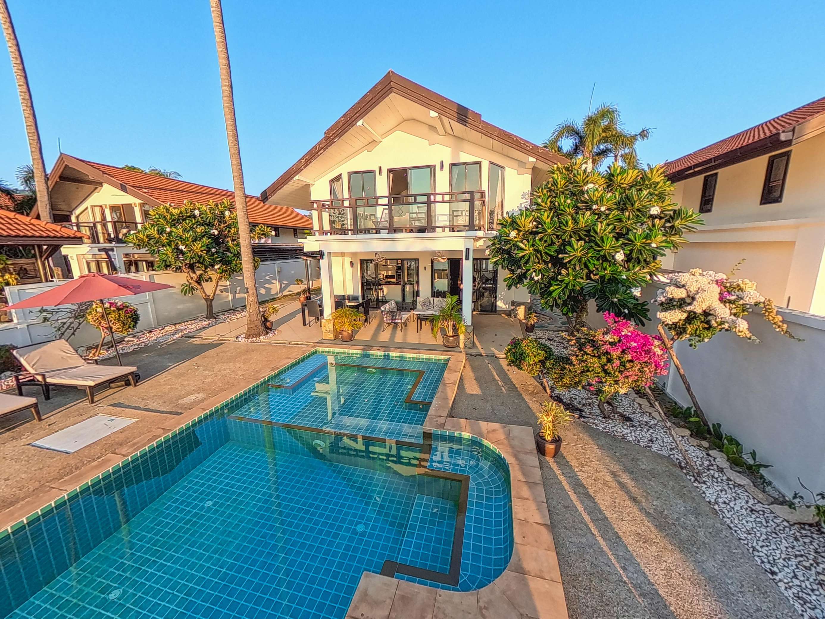 Long Beach stretches roughly 3km and features powdery white sand and clear, swimmable water. You’ll find around 20 beachfront restaurants within a 5-minute stroll from the villa. Nearby, there’s a 7-Eleven, plus several coffee shops, restaurants, a pharmacy, and a medical clinic. A car or scooter isn’t necessary during your stay – everything you need is close by. However, renting a vehicle for a day or two is a great way to see more of the island.