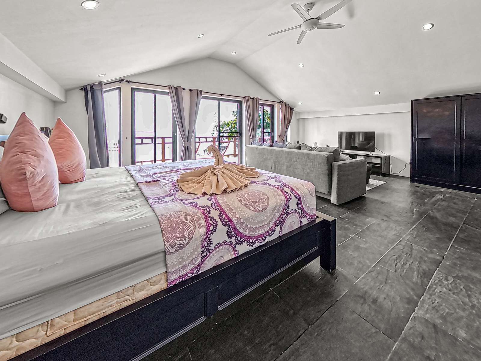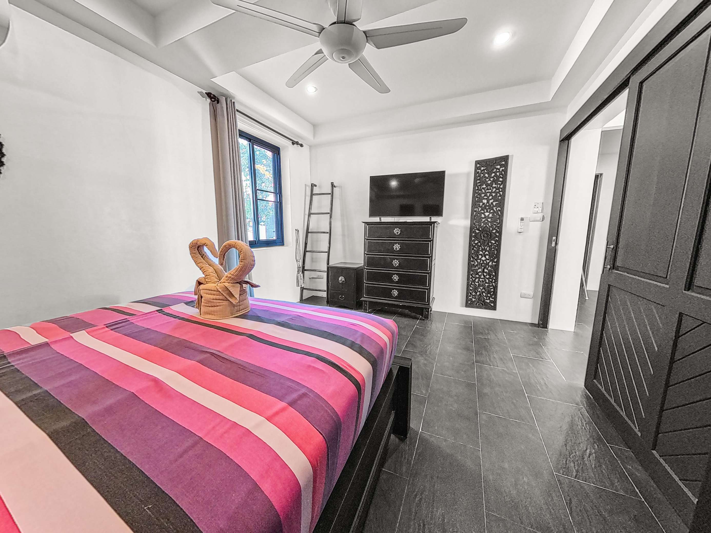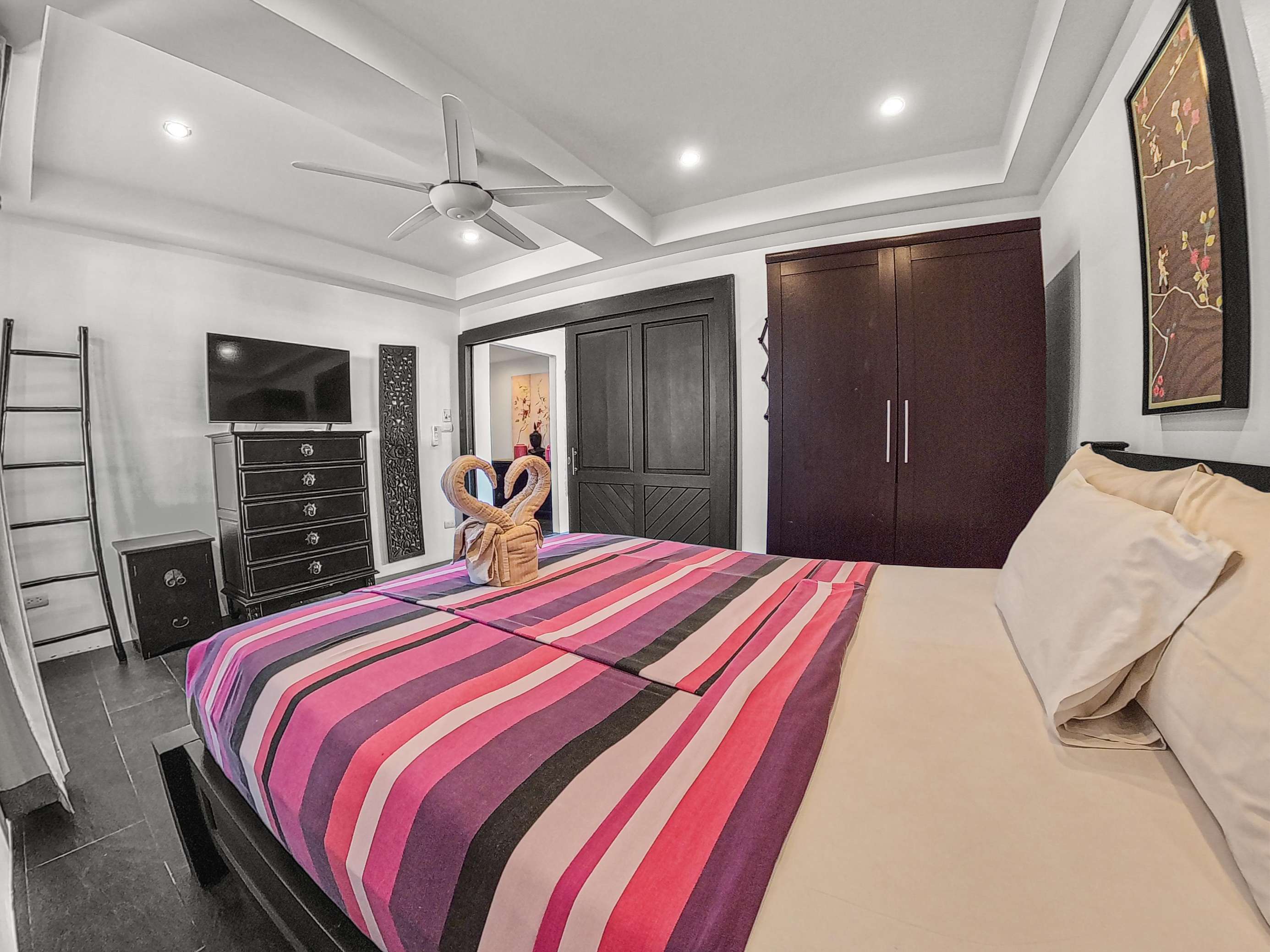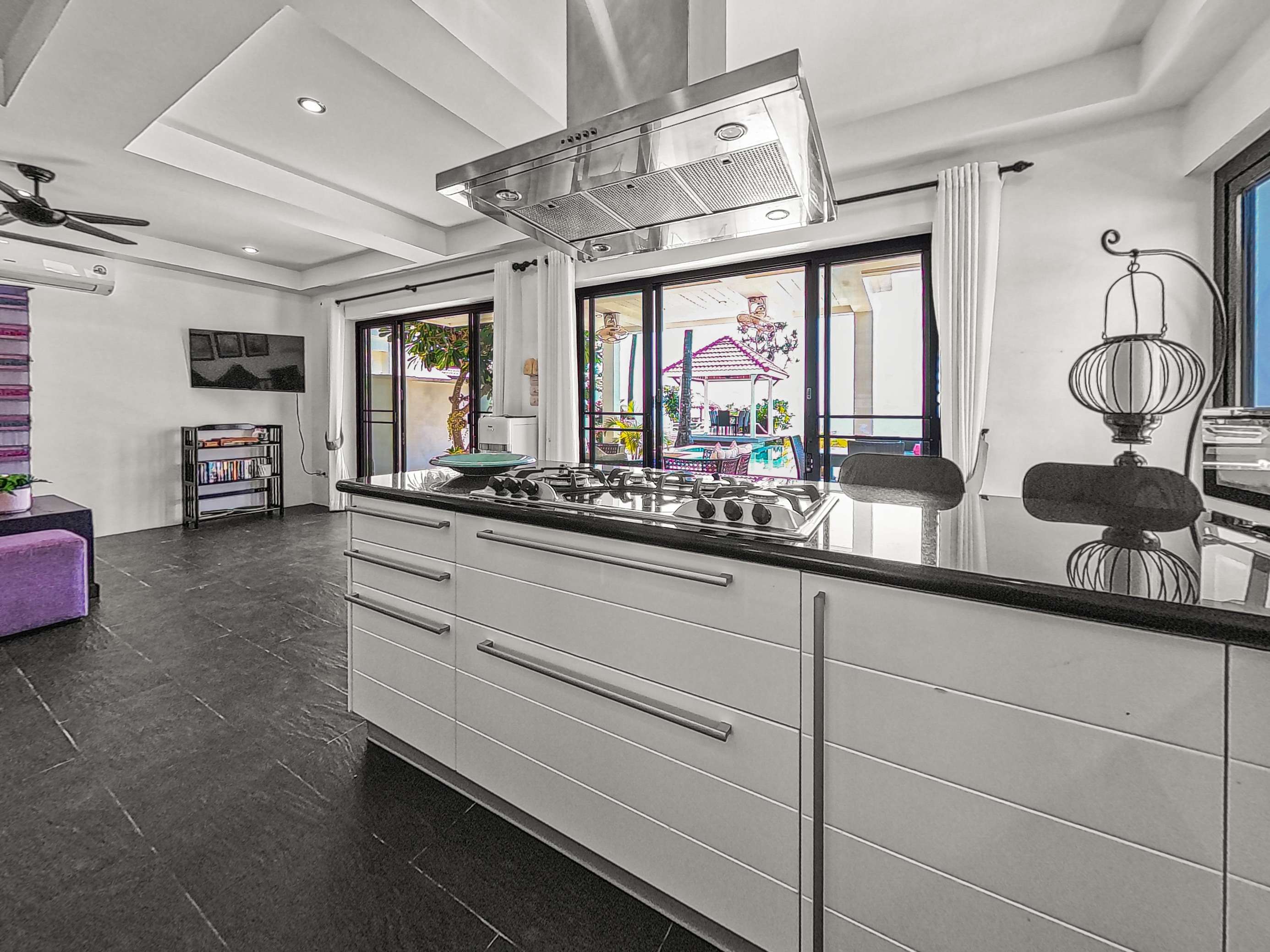 Long Beach stretches roughly 3km and features powdery white sand and clear, swimmable water. You’ll find around 20 beachfront restaurants within a 5-minute stroll from the villa. Nearby, there’s a 7-Eleven, plus several coffee shops, restaurants, a pharmacy, and a medical clinic. A car or scooter isn’t necessary during your stay – everything you need is close by. However, renting a vehicle for a day or two is a great way to see more of the island.